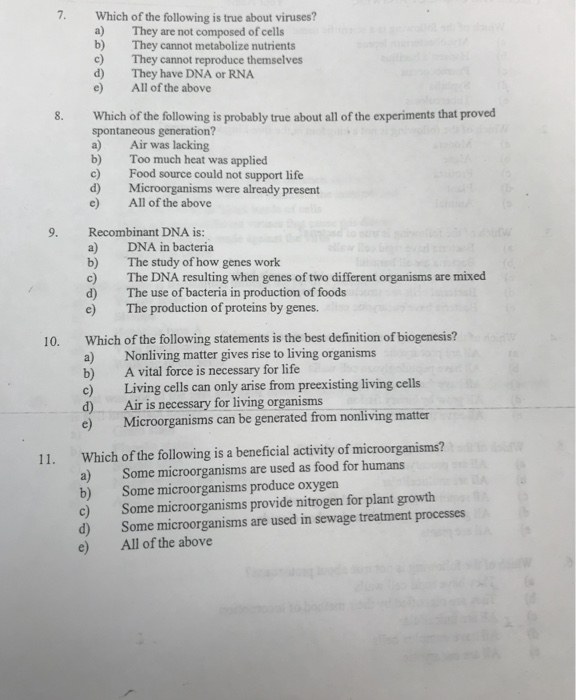 A DNA in bacteria The study of how genes work b c The DNA resulting when genes of two different organisms are mixed The use of bacteria in production of foods d The production of. 1 Microorganisms are involved in each of the following processes EXCEPT. Which of the following bacteria is commonly associated with raw chicken.